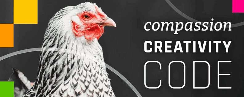 This properly captures everything we're about in 3 words, compassion as our motivator to help animals, creativity in building unique projects as our goal, and code as our means to meet those goals.